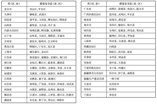 第一批国家农产品质量安全县名单